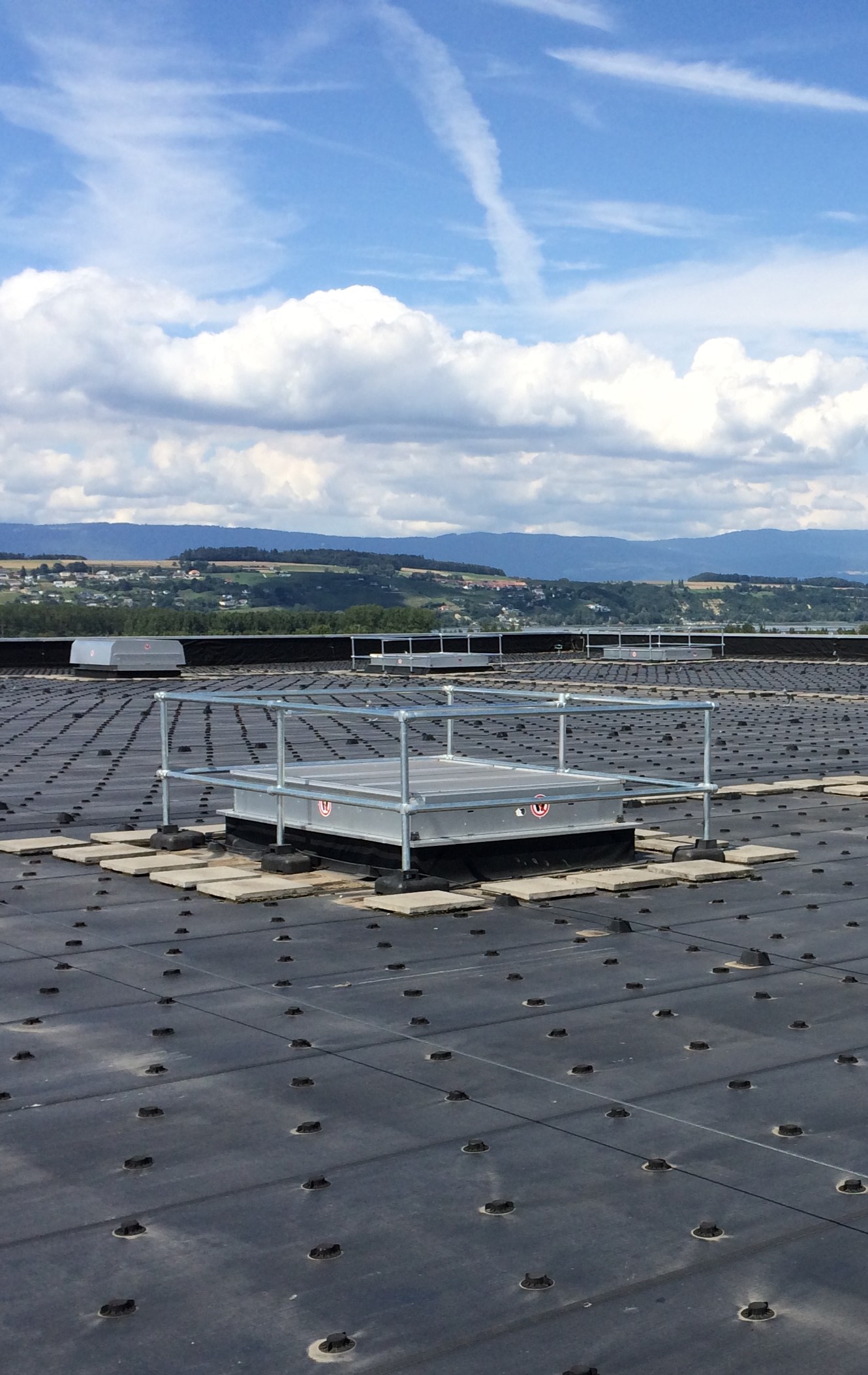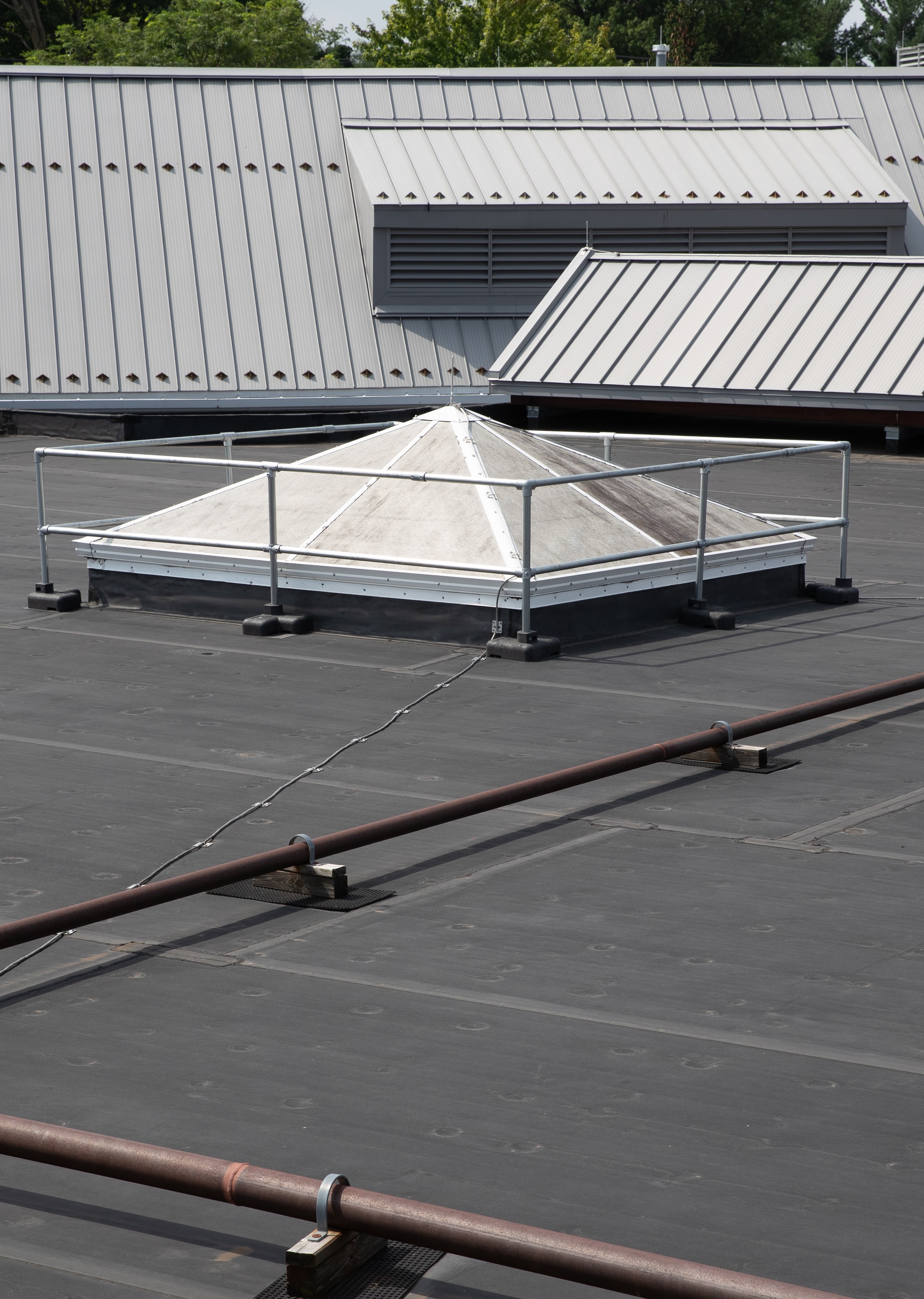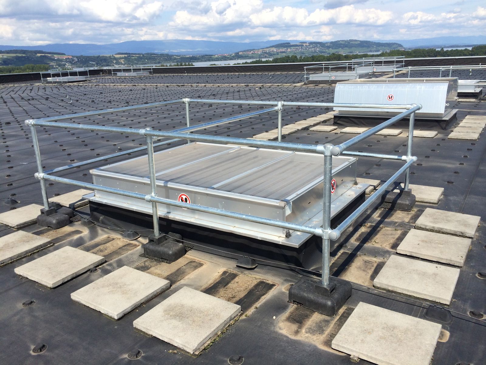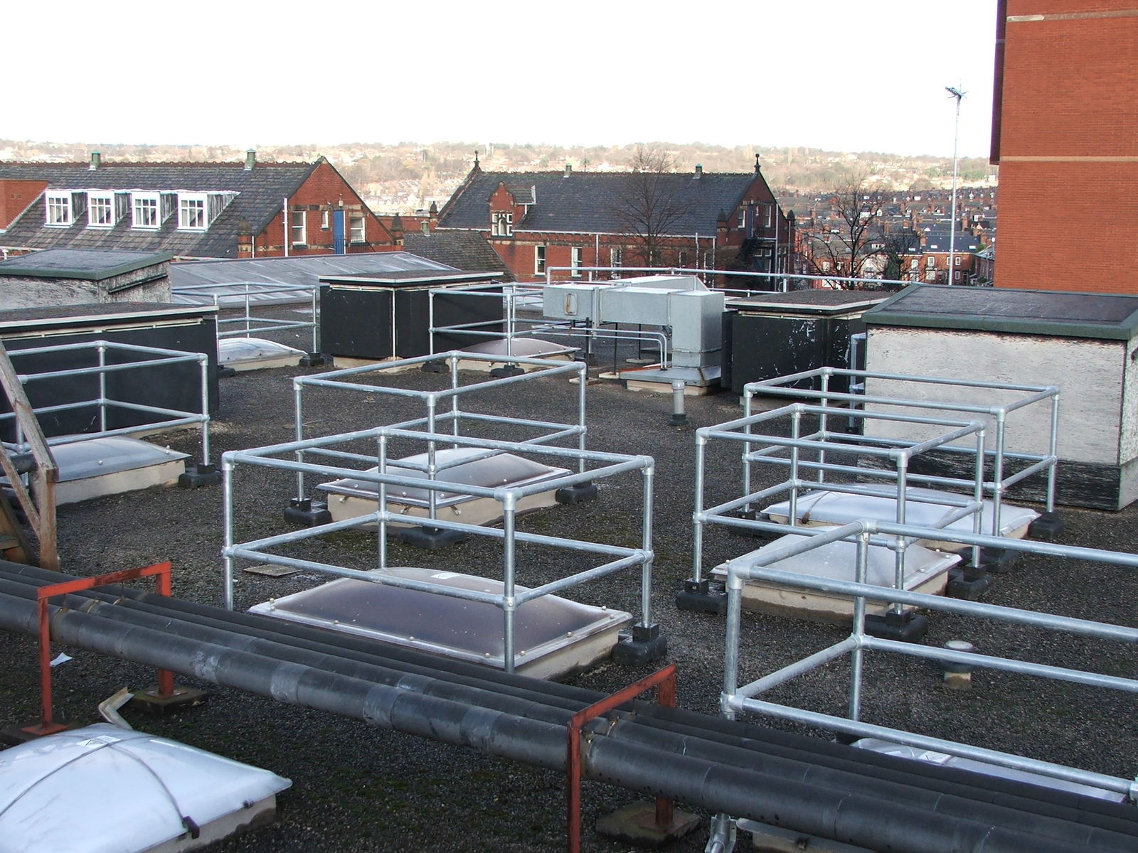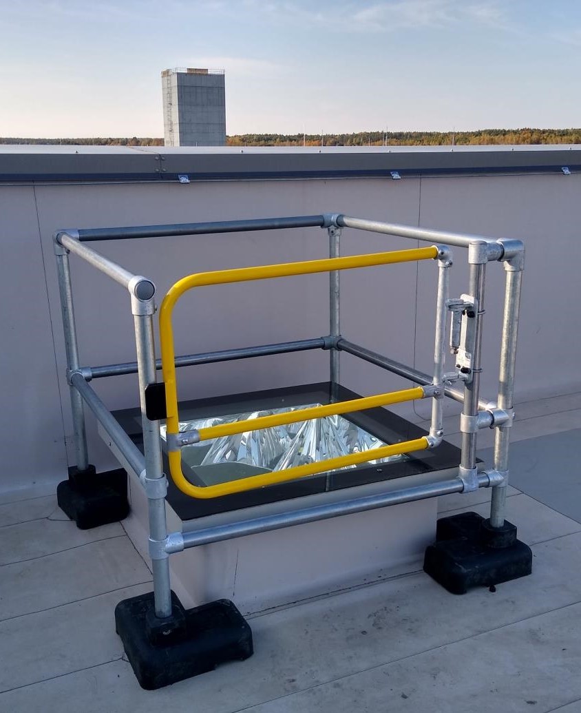 Kee Dome สร้างราวกั้นรอบสกายไลท์เพื่อป้องกันไม่ให้ผู้ปฏิบัติงานสัมผัสกับสกายไลท์ ระบบนี้ป้องกันสกายไลท์ด้วยราวกั้นแบบไม่ต้องมีการเจาะ ซึ่งไม่ทำลายหรือเจาะหลังคา
