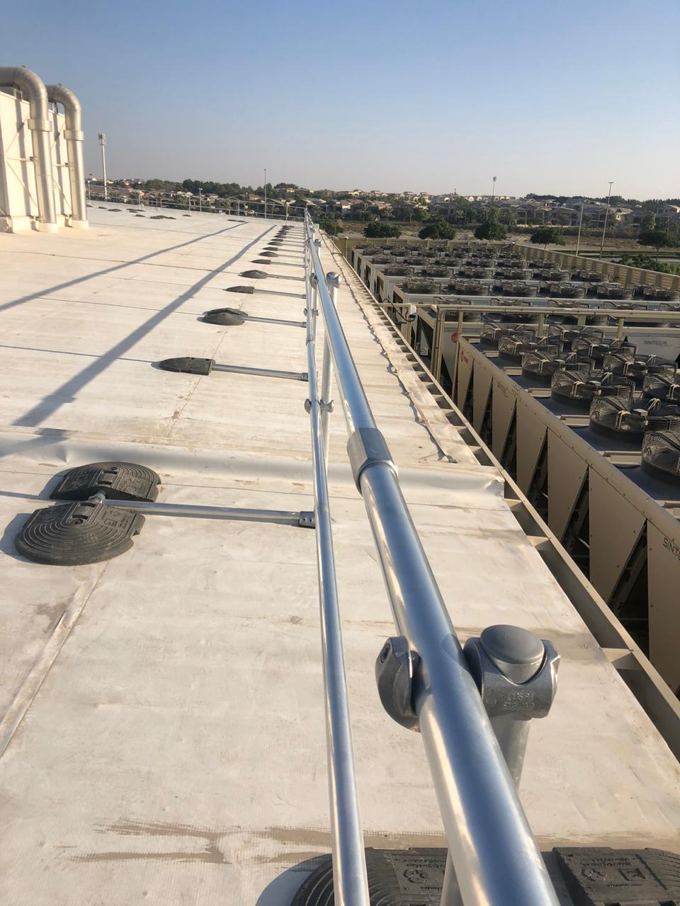 ระบบป้องกันการตกขอบหลังคาแบบตั้งพื้นซึ่งใช้น้ำหนักถ่วงและไม่ต้องมีการเจาะแผ่นหลังคา