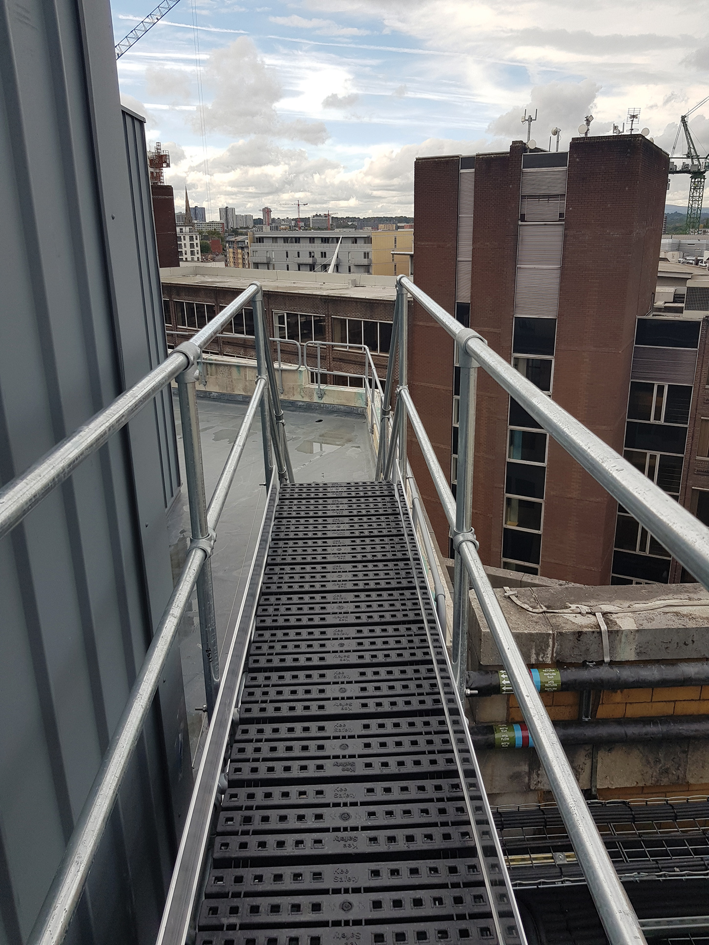 สามารถติดตั้งราวกันตกที่ทนต่อการกัดกร่อนได้ที่ด้านใดด้านหนึ่งหรือทั้งสองด้านของแพลตฟอร์ม Kee Walk®